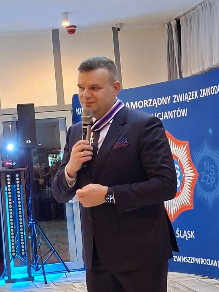 Miłym akcentem było również uhonorowanie Przewodniczącego ZW przez Kapelana Policji Dolnośląskiej ks. kanonika Stanisława Stelmaszka, który wręczył figurkę św. Michała Archanioła – patrona Policjantów.